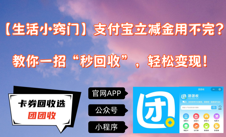【团团收】【生活小窍门】支付宝立减金用不完?教你一招“秒回收”,轻松变现!