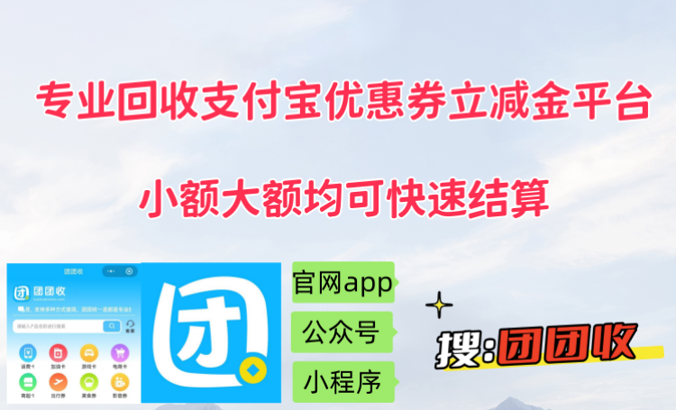 【团团收】专业回收支付宝优惠券立减金平台,小额大额均可快速结算!